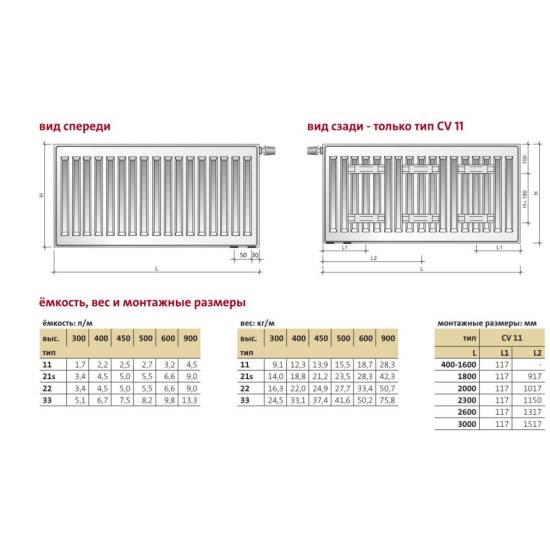 Запитка со стороны пола в радиаторах CV11 стандартно размещается слева.