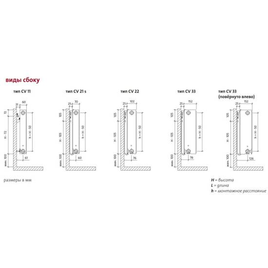 Запитка со стороны пола в радиаторах CV11 стандартно размещается слева.